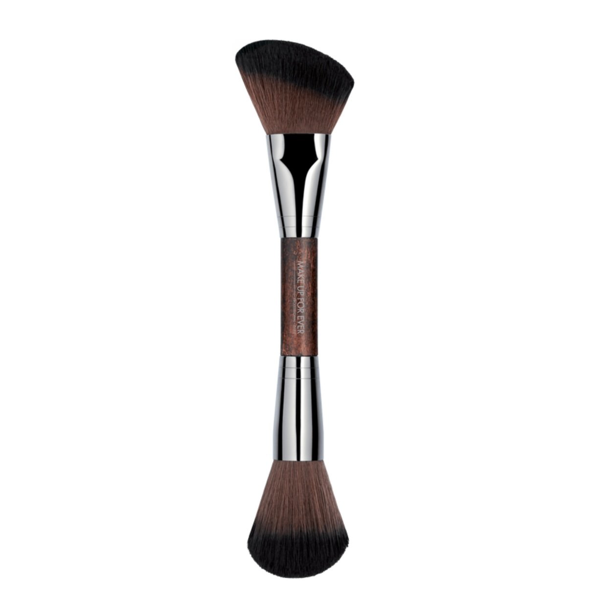 Šis būtinas, dvipusis šepetėlis turi apvalią ir įstrižą galvutes. Apvaliąja puse patogu tepti pudrą ar išryškinti veido bruožus, o įstrižoji idealiai tinka skruostikauliams formuoti. Šepetėlis puikiai pritaikytas naudoti tiek su biriomis, tiek su kompaktinėmis pudromis.