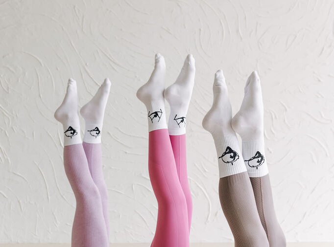 Kojinės su oro akrobate ant juostų ,Kojinės su oro akrobate ant lanko |